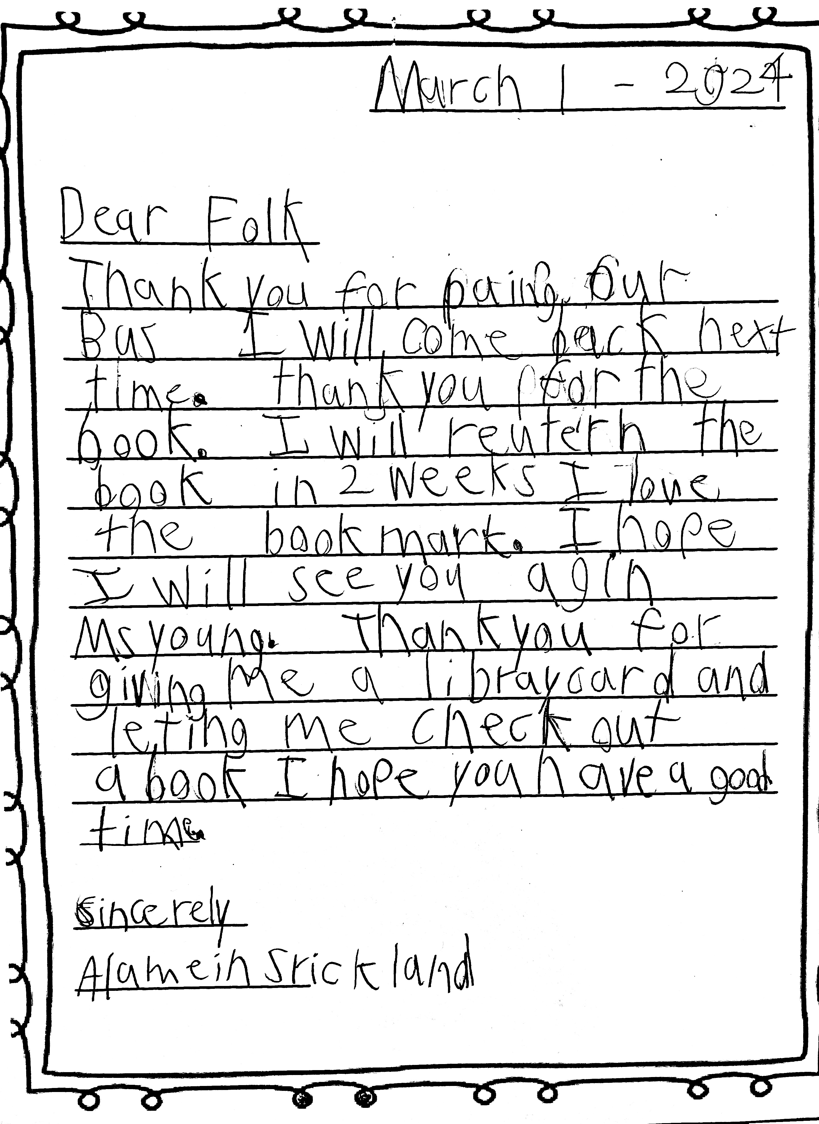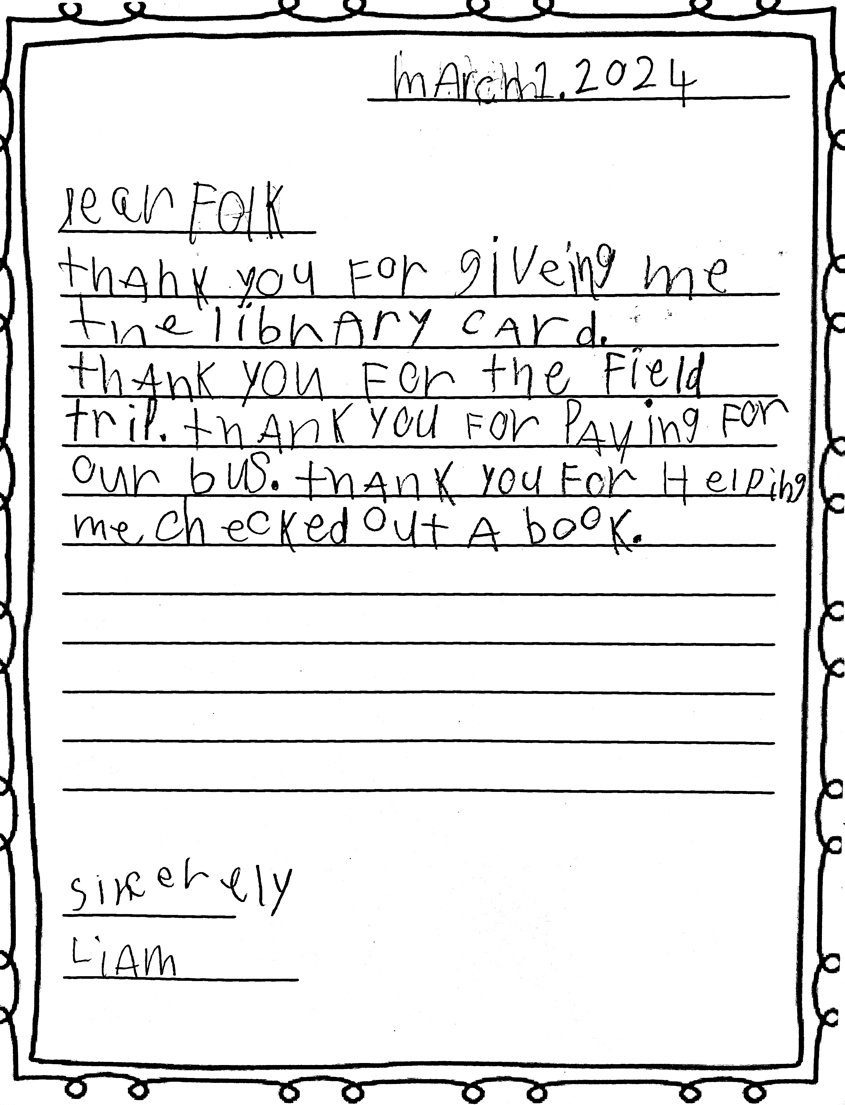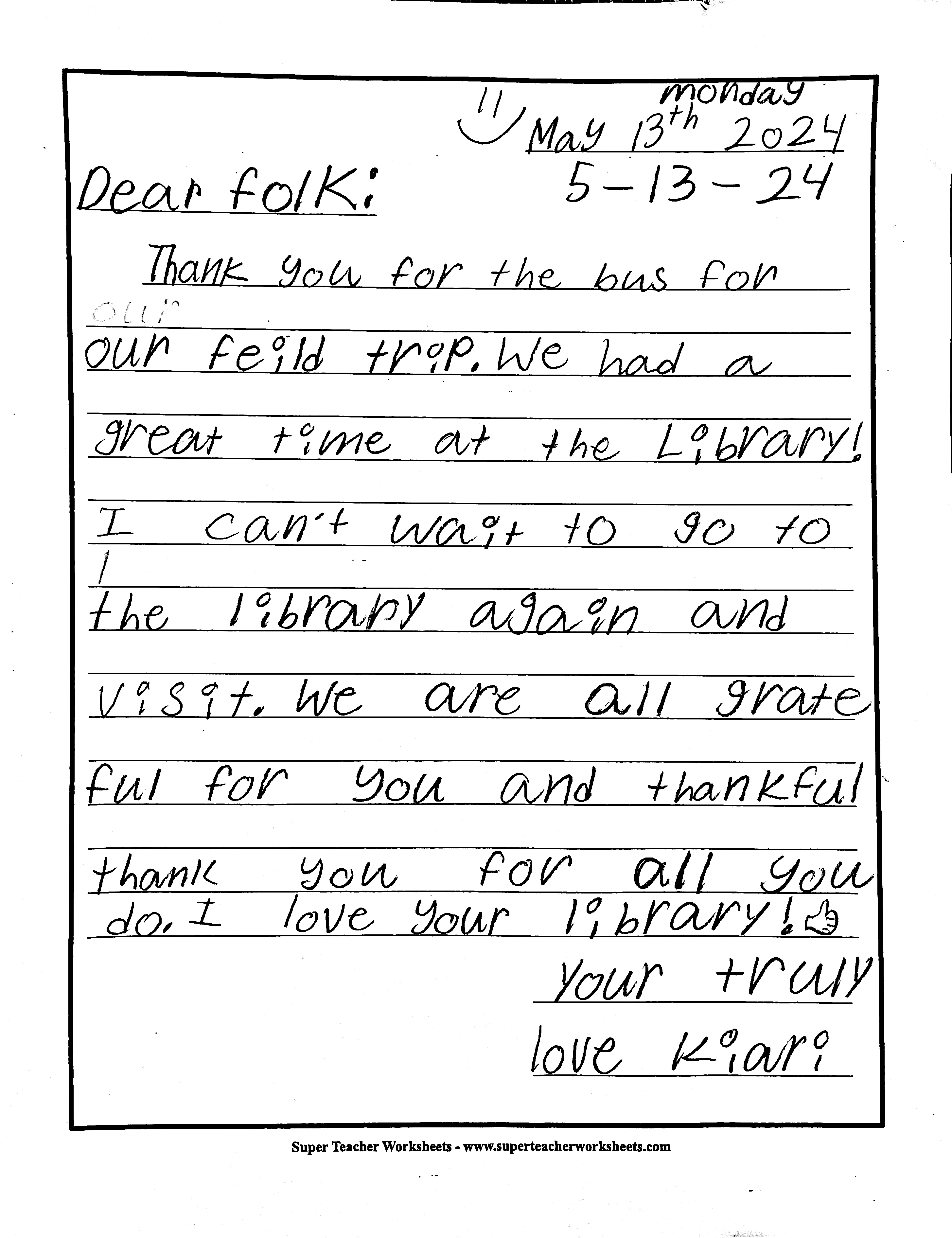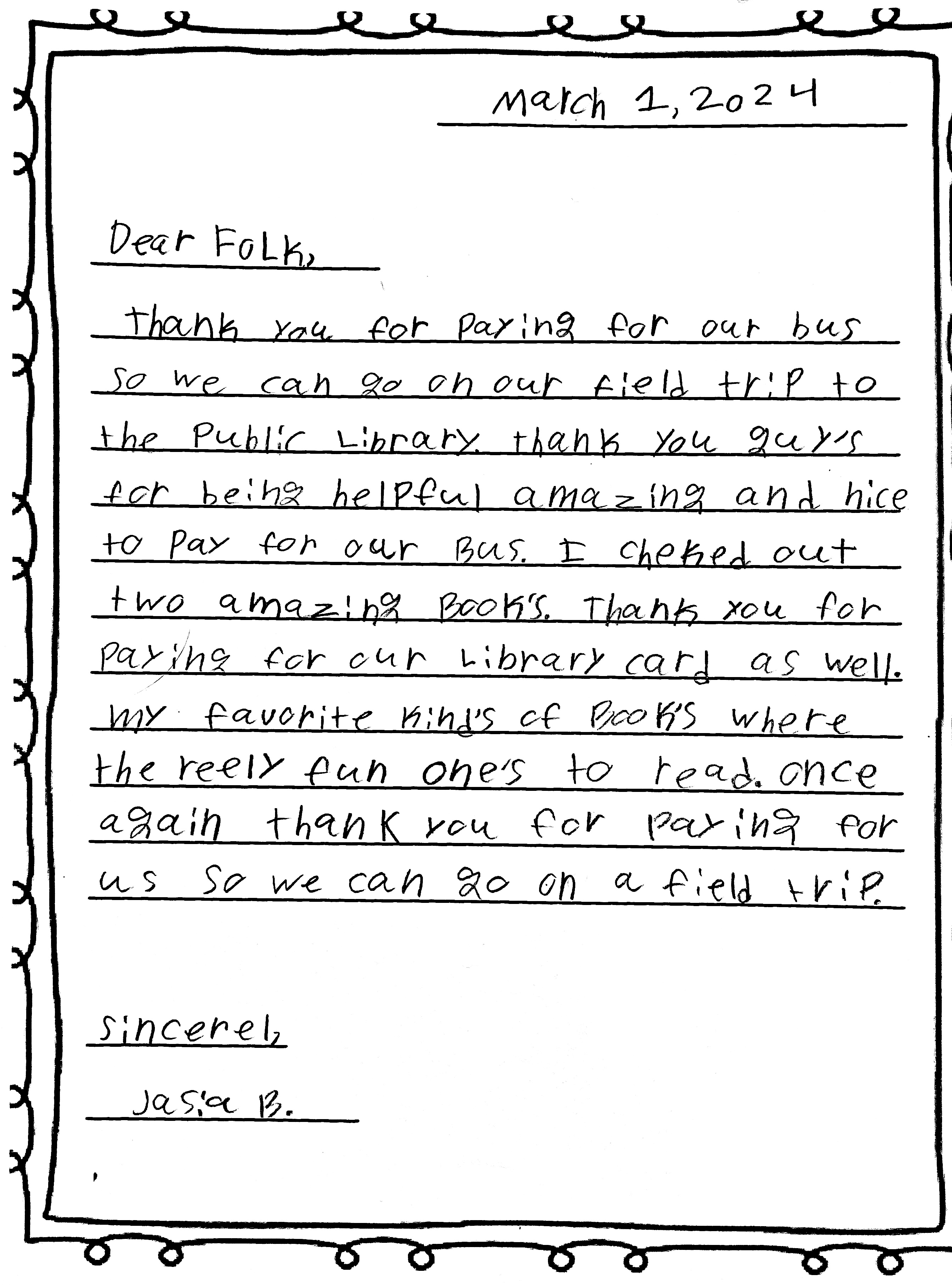 Friendly Bus Thank-You Letters
